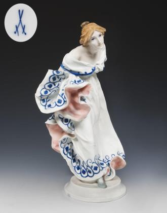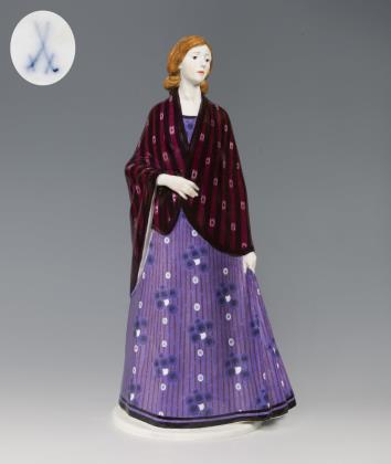 Large Art Nouveau figurine: Lady with cape. Meissen.