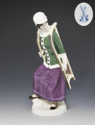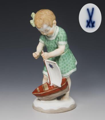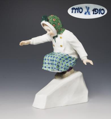 Art Nouveau child figurine: Girl, sliding. Meissen.