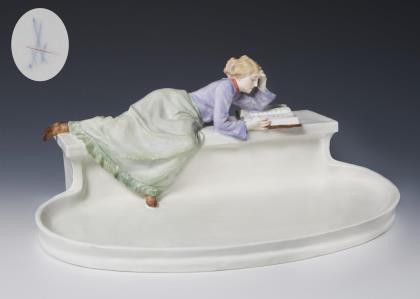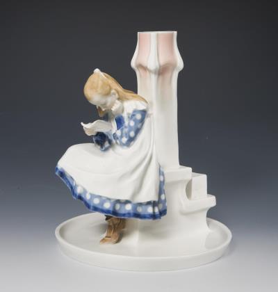 Art Nouveau figurine chandelier: Girl, reading. Meissen.