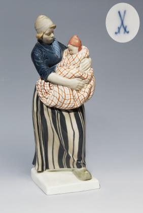 Art Nouveau figurine group: Dutch mother with child. Meissen.