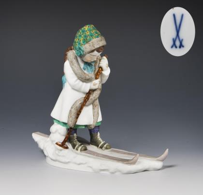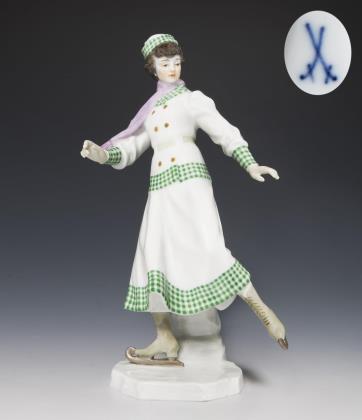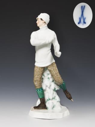 Pendant zu Modell-Nr. Z 194 "Schlittschuhläuferin", farbig bemalt. Ritzmarke, Pressmarke, Malermarke, Schwertermarke