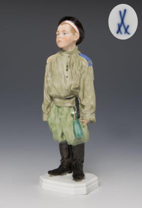 Pendant zu Modell-Nr. W 131 "Knabe, Schneebälle werfend", farbig bemalt. Ritzmarke, Pressmarke, Malermarke, Schwertermarke