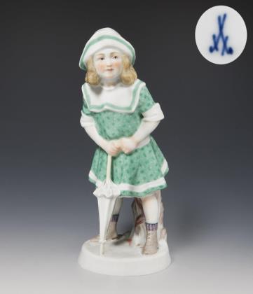 Rare Art Nouveau child figurine: Girl with umbrella. Meissen.