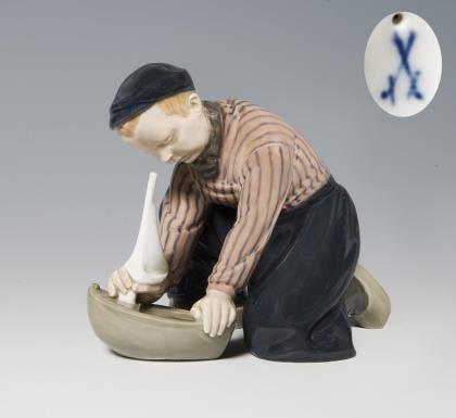 Art Nouveau figurine: Child with locomotive. Meissen.