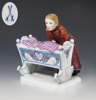 Art Nouveau figurine: Girl at cradle. Meissen.