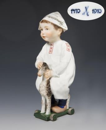 Art Nouveau figurine: Child with wooden horse. Meissen.