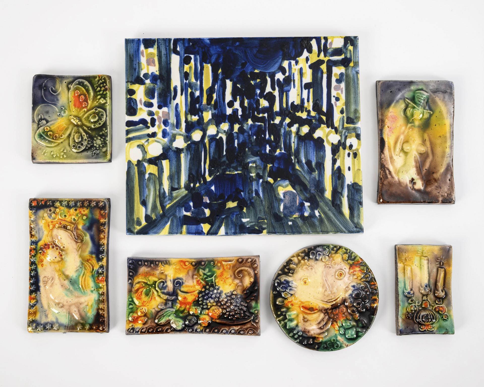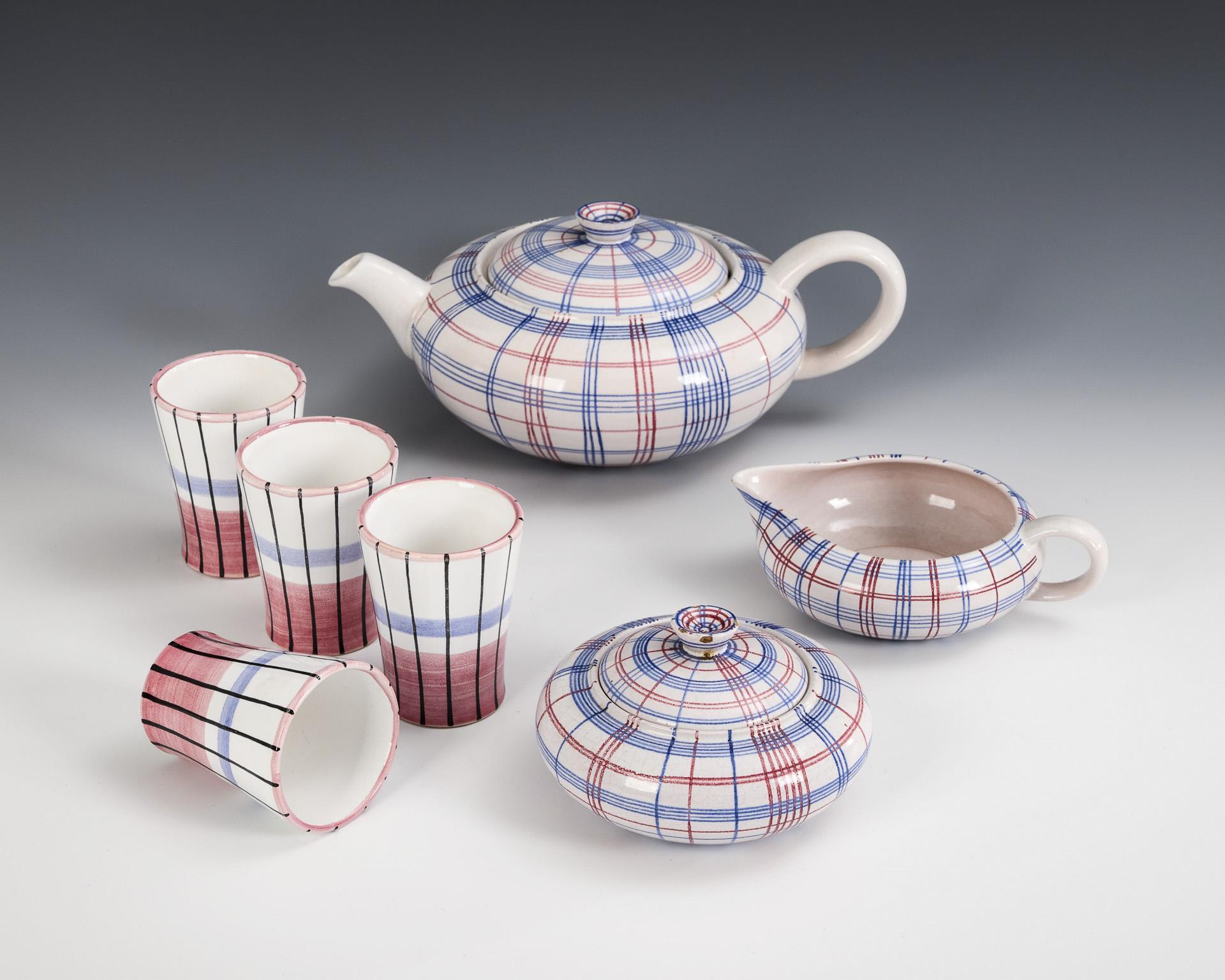 7 ceramics from 2 coffee/tea sets by Hedwig Bollhagen. HB workshops for ceramics in Marwitz.