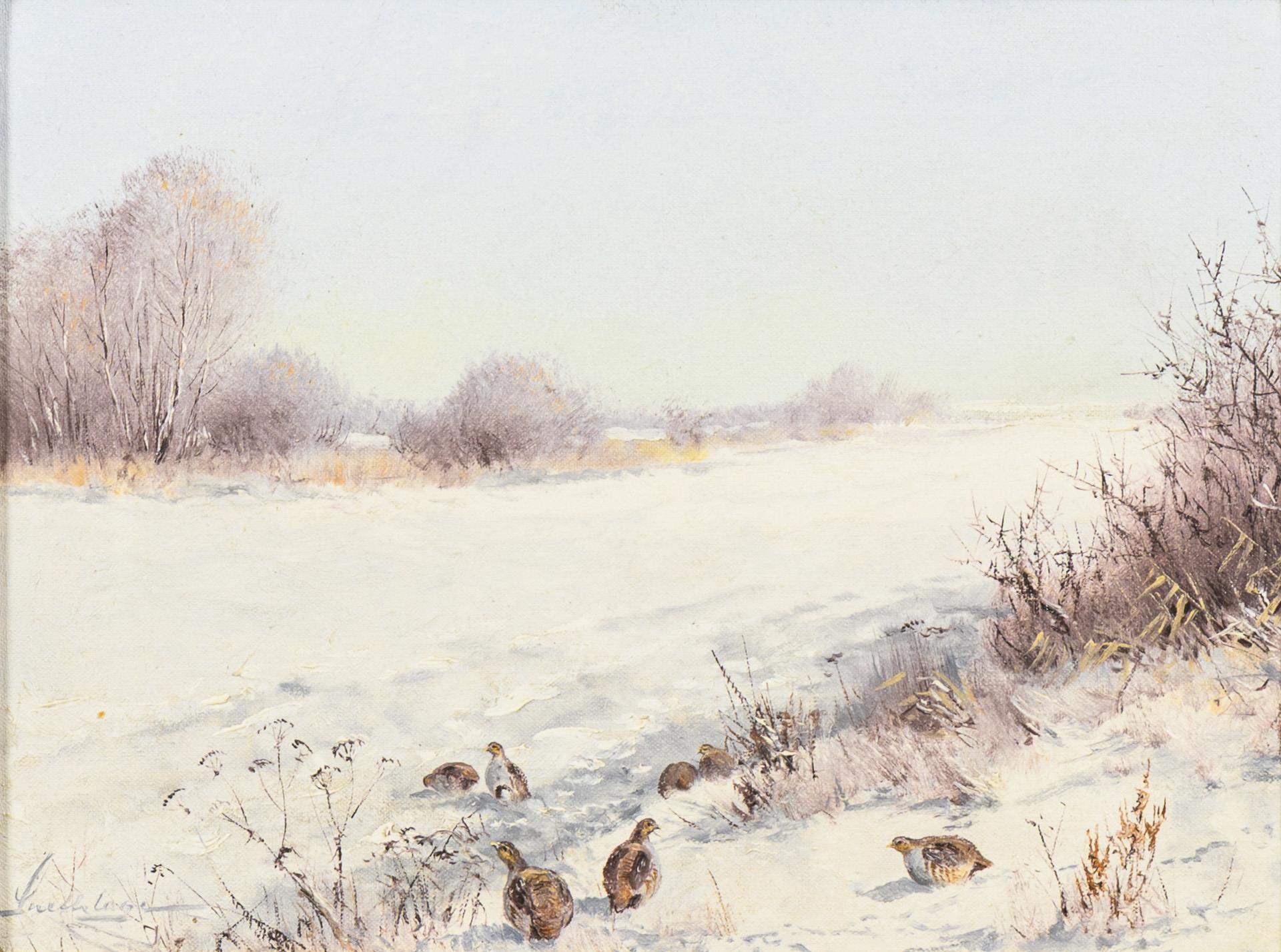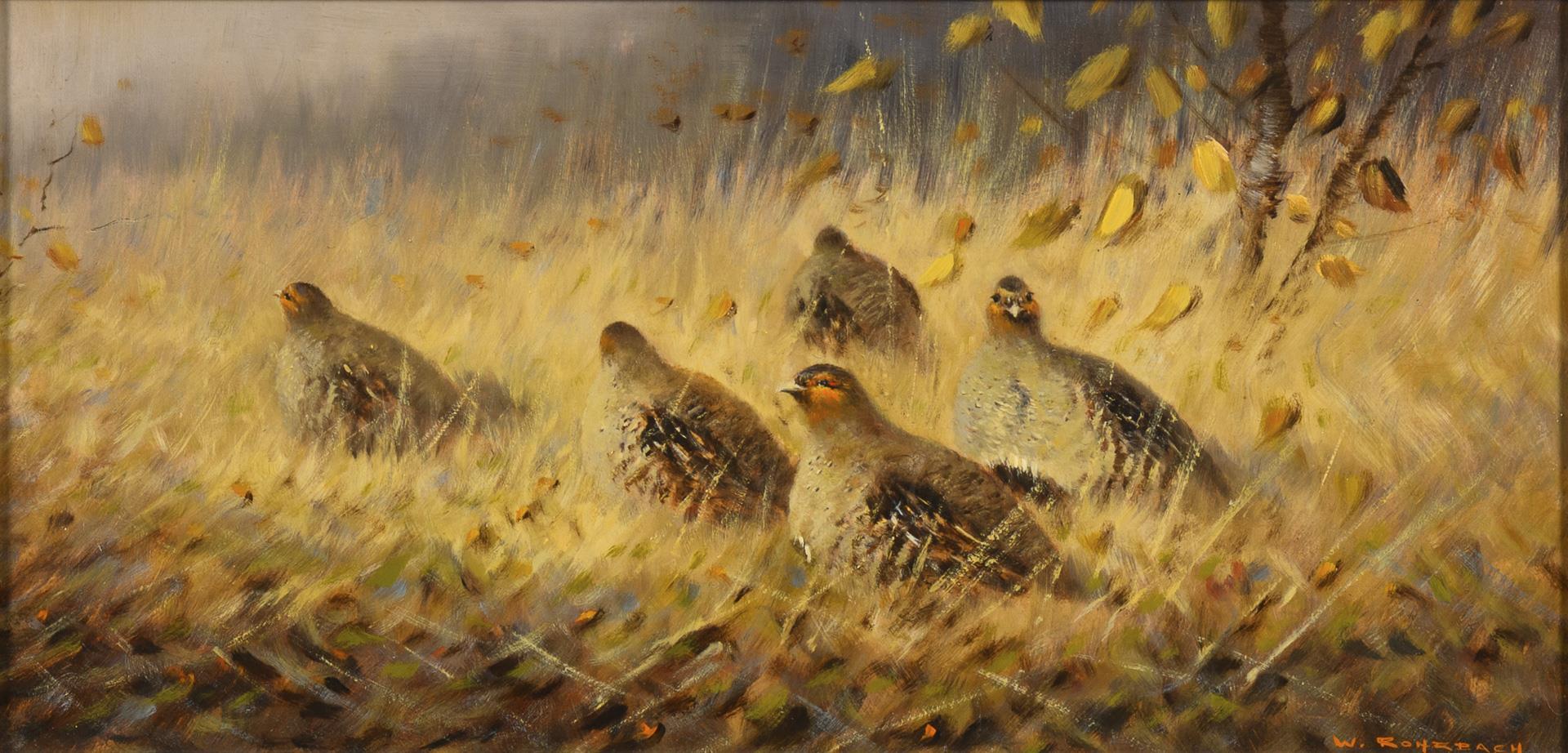 ROHRBACH, Walter (1939 Rothenburg an der Fulda - 2021 Niederaula-Kerspenhausen/Bad Hersfeld). Partridges in the grass.