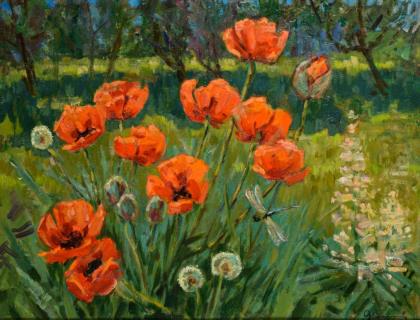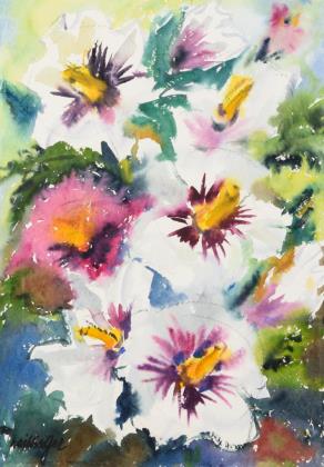 Impressionistisch gemalte Malven in verschiedenen Farben