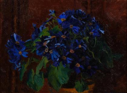 Topfpflanze mit blau-violetten Blüten