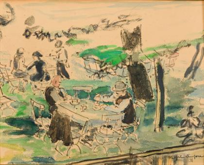Monogrammist "MB": Blumenbank am Haus