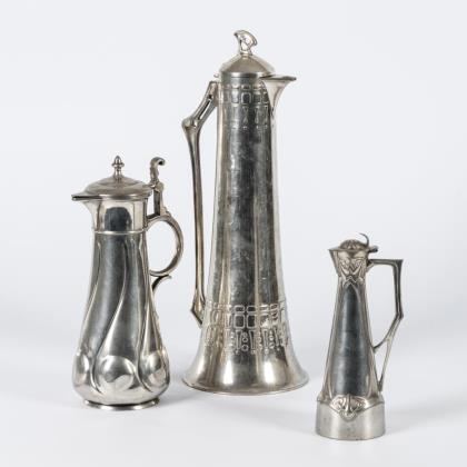 Jugendstil-Zinnkanne und -schale