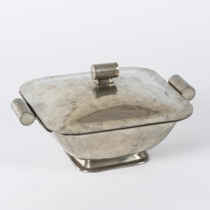 Jugendstil-Tablett und -Henkelschale Silberzinn