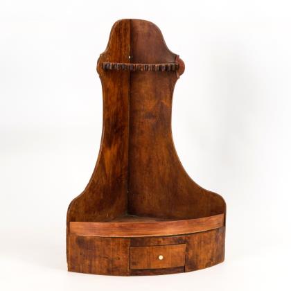 Eckregal mit Schub im Sockel und Reling für 11 Pfeifen