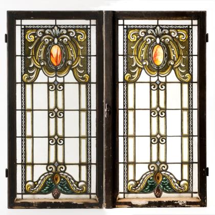 2-flügeliges Jugendstil-Bleiglasfenster