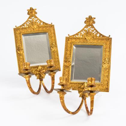Paar 2-flammige Wandleuchter mit Spiegeln