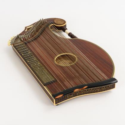 Korpus mit Einlagen und Applikationen, 5 Spielsaiten, 35 Akkordsaiten