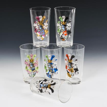 6 Gläser mit studentischen Wappen