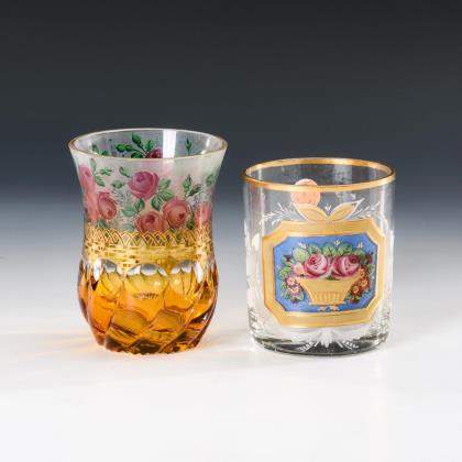 2 Biedermeier-Becher mit Emailmalerei