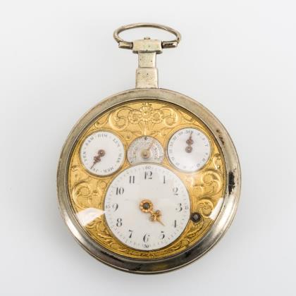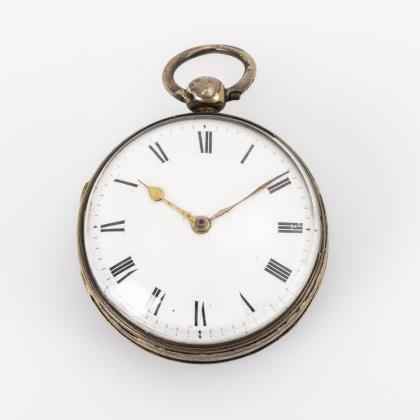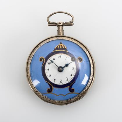 Versilberte Biedermeier-Taschenuhr mit blauem Emailzifferblatt