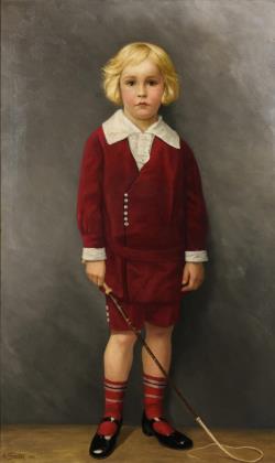 Bildnis eines Jungen in roter Kleidung mit Peitsche.