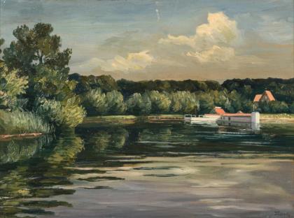 Öl/Sperrholz. Rechts unten monogrammiert. Datiert: (19)40.