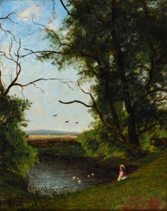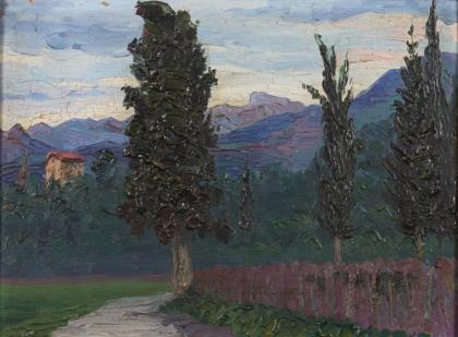 Öl/Papier/Karton. Links unten monogrammiert und geritztes Datum "1904", verso "Elly Abeking" bezeichnet.