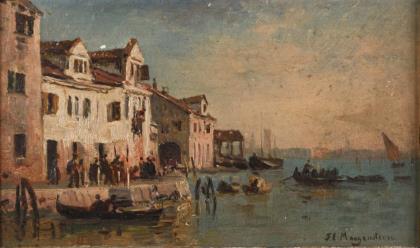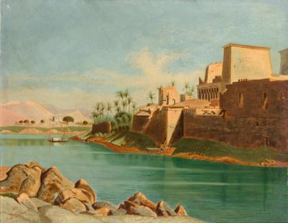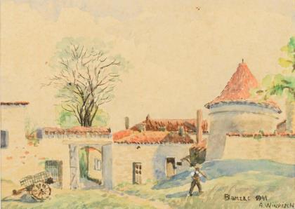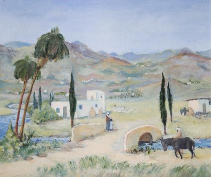 Rückseitig alte Klebezettel, bezeichnet: A. Roubtzoff 1946 Tunis. Stuckrahmen mit weiß gefasster Leiste