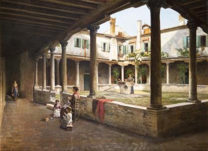Rückseitig mit Bleistift bezeichnet: Seinem Neffen Ludwig zu seinem Hochzeitstage am 26. August gewidmet von seinem Onkel Josef Schoyerer 1920…Profilierter Rahmen