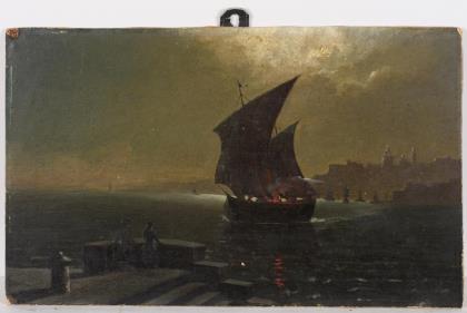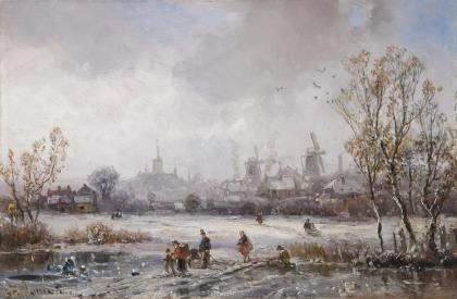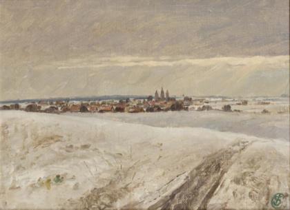 Monogrammist "N": Küstenstreifen mit Stadtsilhouette im Winter