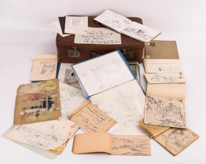 Originaler Reisekoffer von Alexander von Szpinger mit zahlreichen Skizzen