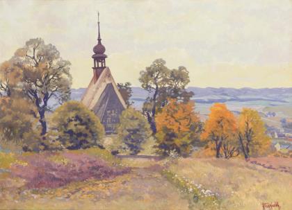 TAUSCHINSKY, Gustav (1888 - 1978, addendum 6.1.2022). "The Cross Mountain in Moravian. Trübau".