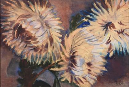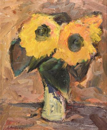 Undeutlich signiert: Sonnenblumen