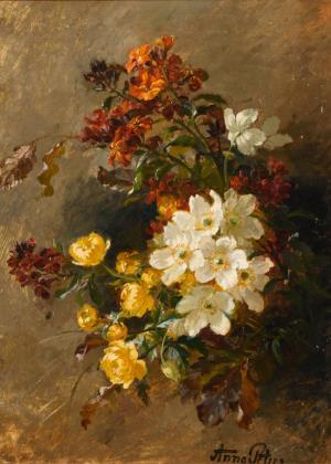 Undeutlich signiert: Blumenstrauß
