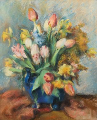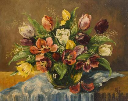 Undeutlich signiert: Tulpenstrauß