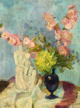 Monogrammist: Stillleben mit Blumen und Porzellanfigur