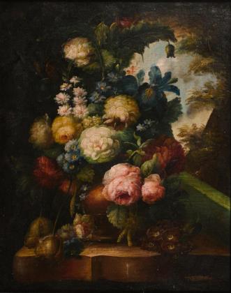 Stillleben mit Blumen und Früchten im Altmeisterstil