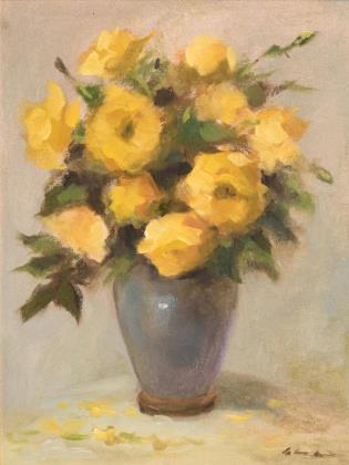 Undeutlich signiert: Gelbe Rosen