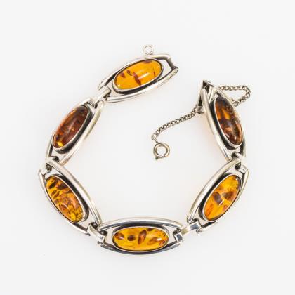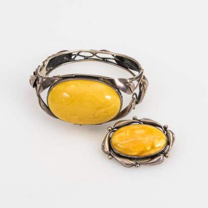 Armreif und Brosche mit Bernstein