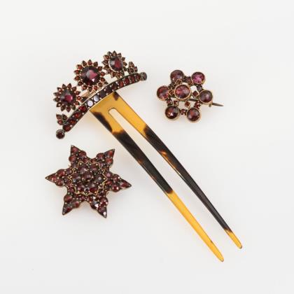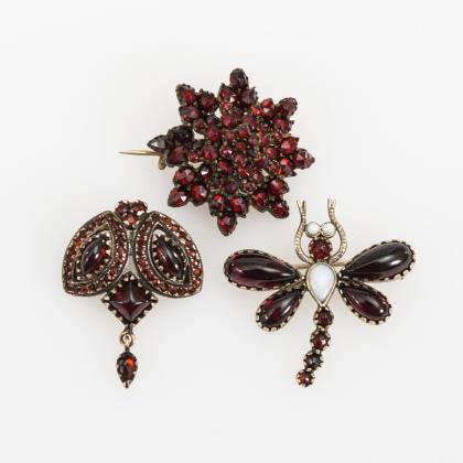 3 Broschen mit Granatbesatz