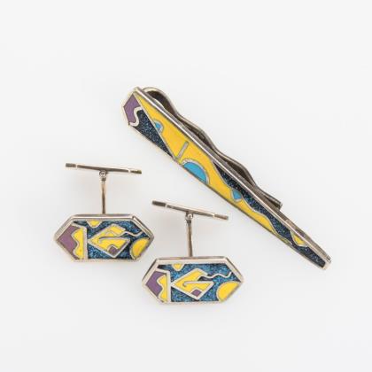 Finnische Designer-Krawattennadel und Manschettenknopfpaar