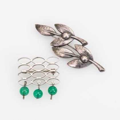 Brosche mit Grünachaten und WMF-Brosche