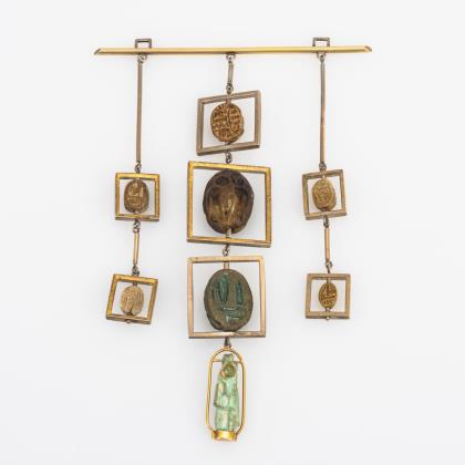 Außergewöhnlicher, großer Anhänger mit antiken Skarabäen und kleiner Plastik