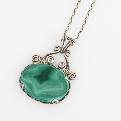 Designer-Anhänger mit Malachit an Kette