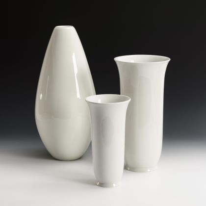 2 schlanke Glockenvasen (H 25 und 34,5 cm). / 1 ovoide Vase (H 43 cm)