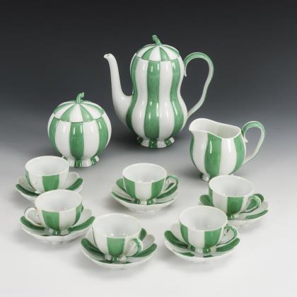 15 Teile. Mokkakanne (H 18 cm), Milchkännchen, Zuckerdose, 6 Mokkatassen und 6 Untertassen