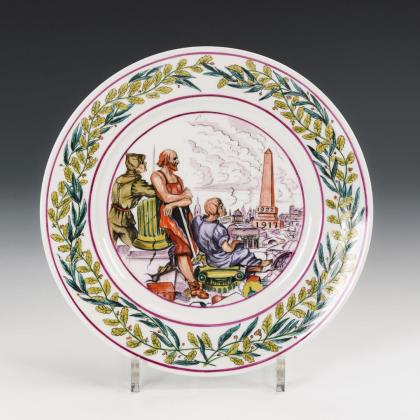 Rechteckige kleine Platte mit der Reliefdarstellung einer Pierrette und eines Zauberers