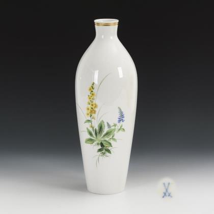 Schlanke Balustervase. Schauseitig ein Blumenbukett