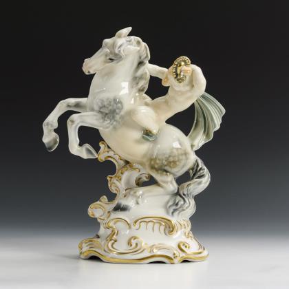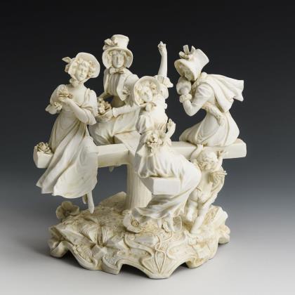 Plastik von vier auf einem Karussell sitzenden Damen als Allegorien der vier Jahreszeiten