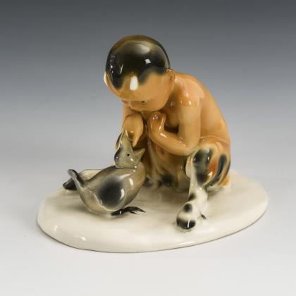 Porzellangruppe: Rastendes Bauernpaar